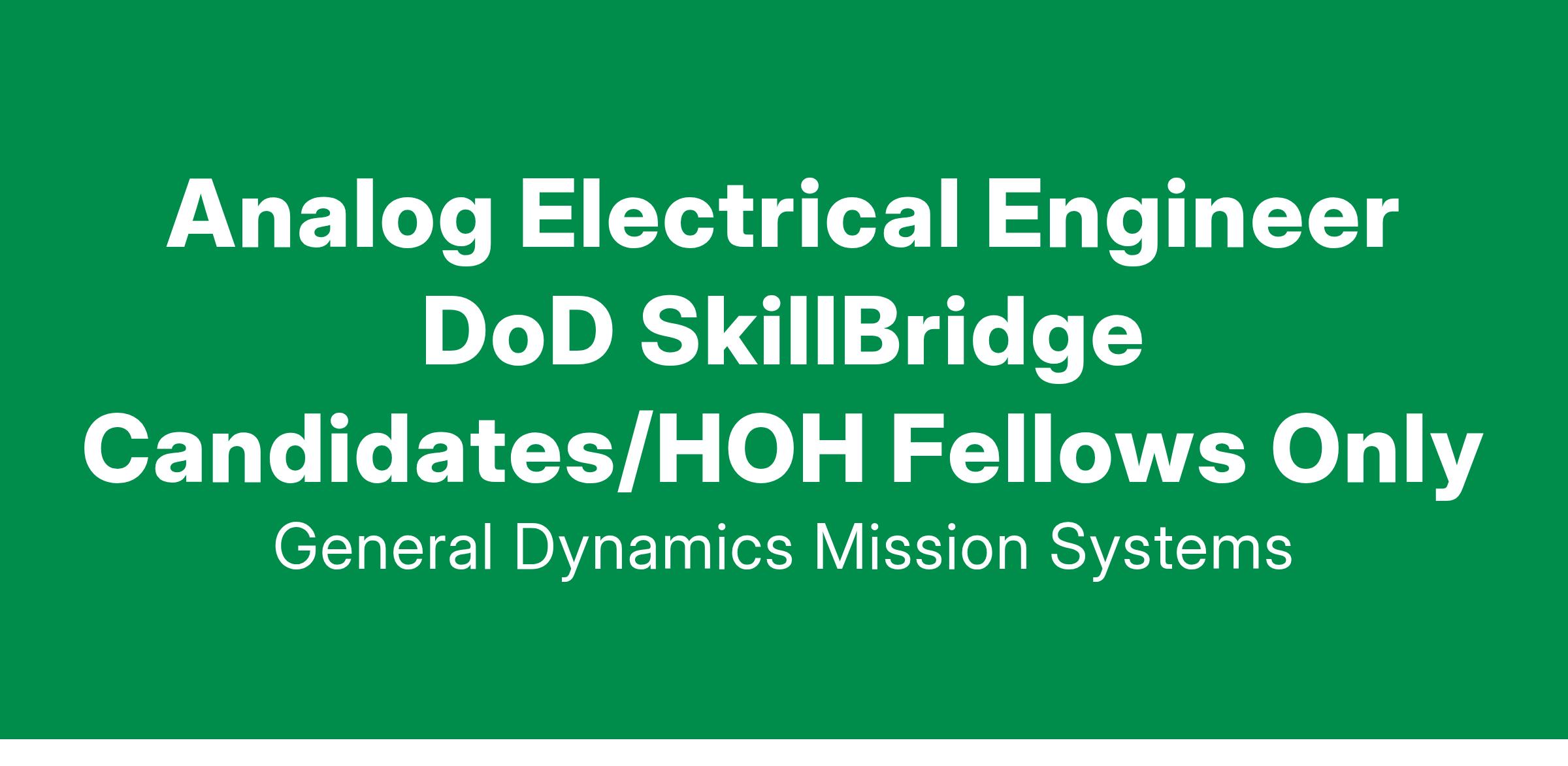 General Dynamics Mission Systems has an opening for a Analog Electrical Engineer