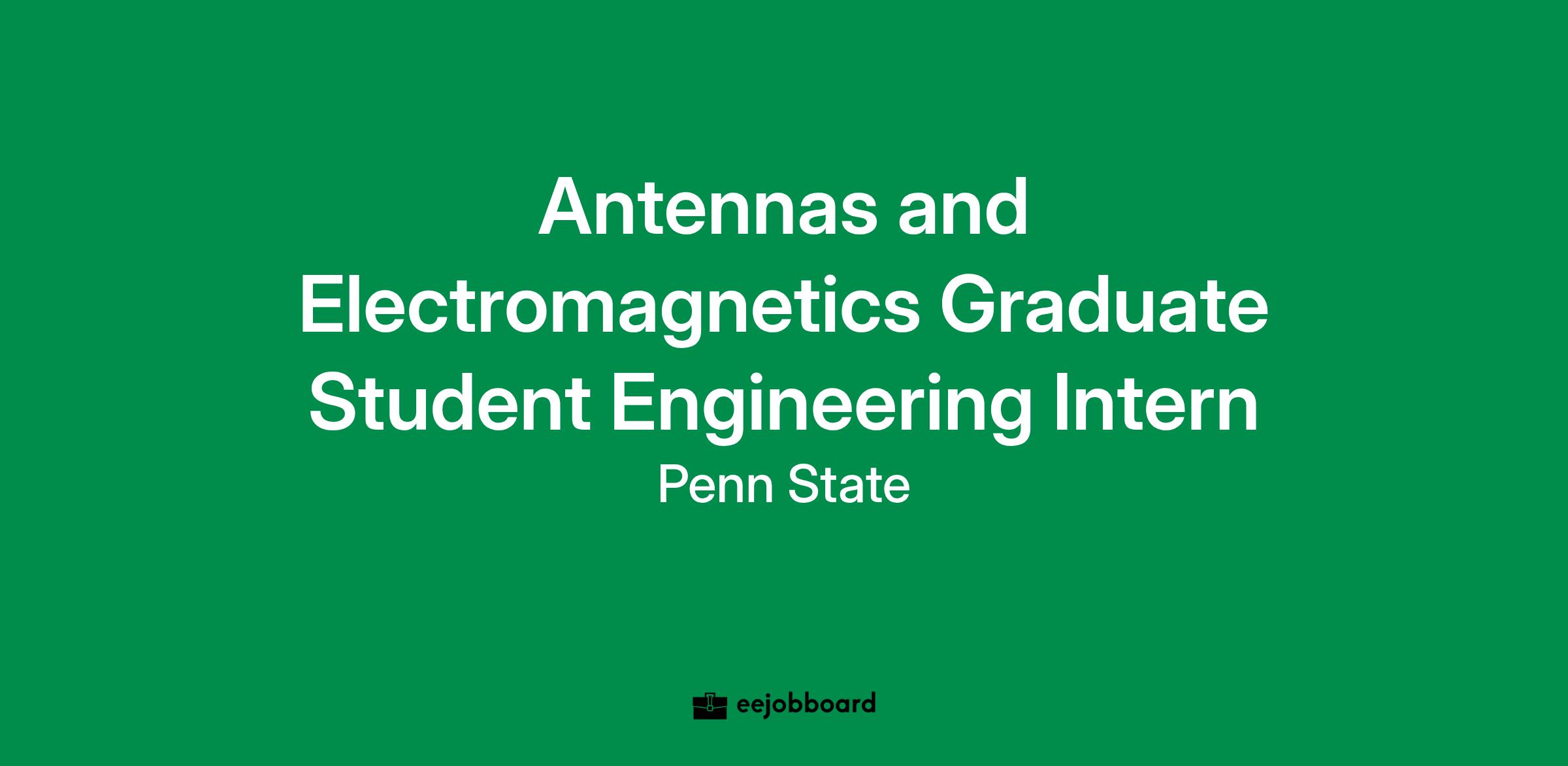 We are seeking Research and Development Engineer interns to join the antennas, Computational Electromagnetics and Propagation Department team of the Applied Research Laboratory (ARL) at Penn State.
