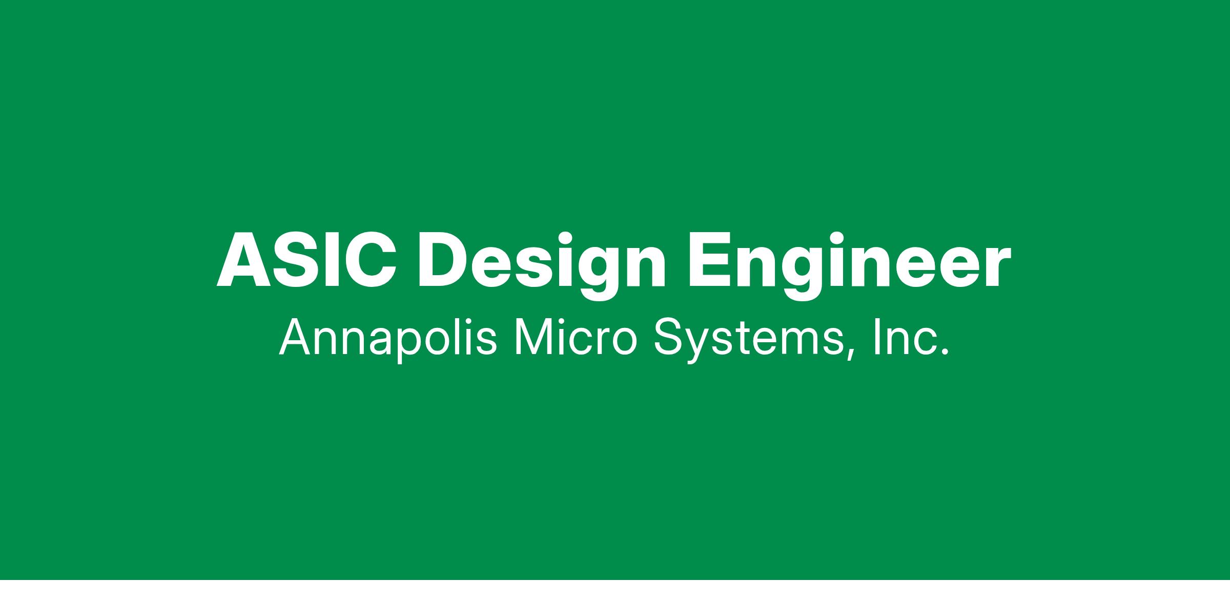 Description: Annapolis Micro Systems, Inc. is seeking an intelligent, versatile, hardware engineer to expand our ASIC and FPGA design group. You will join a team of digital, analog and mixed signal ASIC designers involved in full custom, standard cell and gate array implementations of diverse products. Designs may include designing and integrating macrocells such as static RAMs, transceivers, processors, compression algorithms and analog transceivers, regulators, sensors, and data converters. You will have the opportunity to be involved in all aspects of the ASIC design flow including specification, behavioral and RTL coding, transistor-level analog design, testbench development, code coverage analysis, gate-level synthesis, place and route, clock-tree insertion, scan insertion, formal verification, timing analysis, and physical verification.