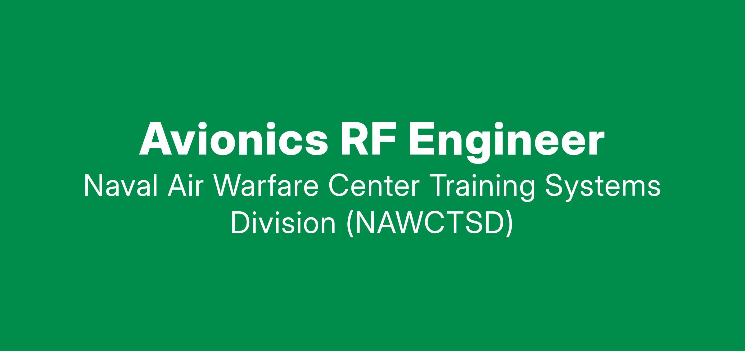 Radio Frequency, Guidance and Engineering Branch in the Weapons and Energetics Department has an opening for an Avionics RF Engineer. Responsibilities will include: providing feedback/oversight on design and development activities; supporting technical design reviews; reviewing requirements specifications, requirements flow-down and verification methodologies; supporting risk identification and mitigation planning. The ideal candidate will have experience in radar systems, antenna design, electronic support. Incumbent would have frequent interaction with other offices, to include contractors. The candidate must be able to obtain & maintain a Top Secret clearance is required.