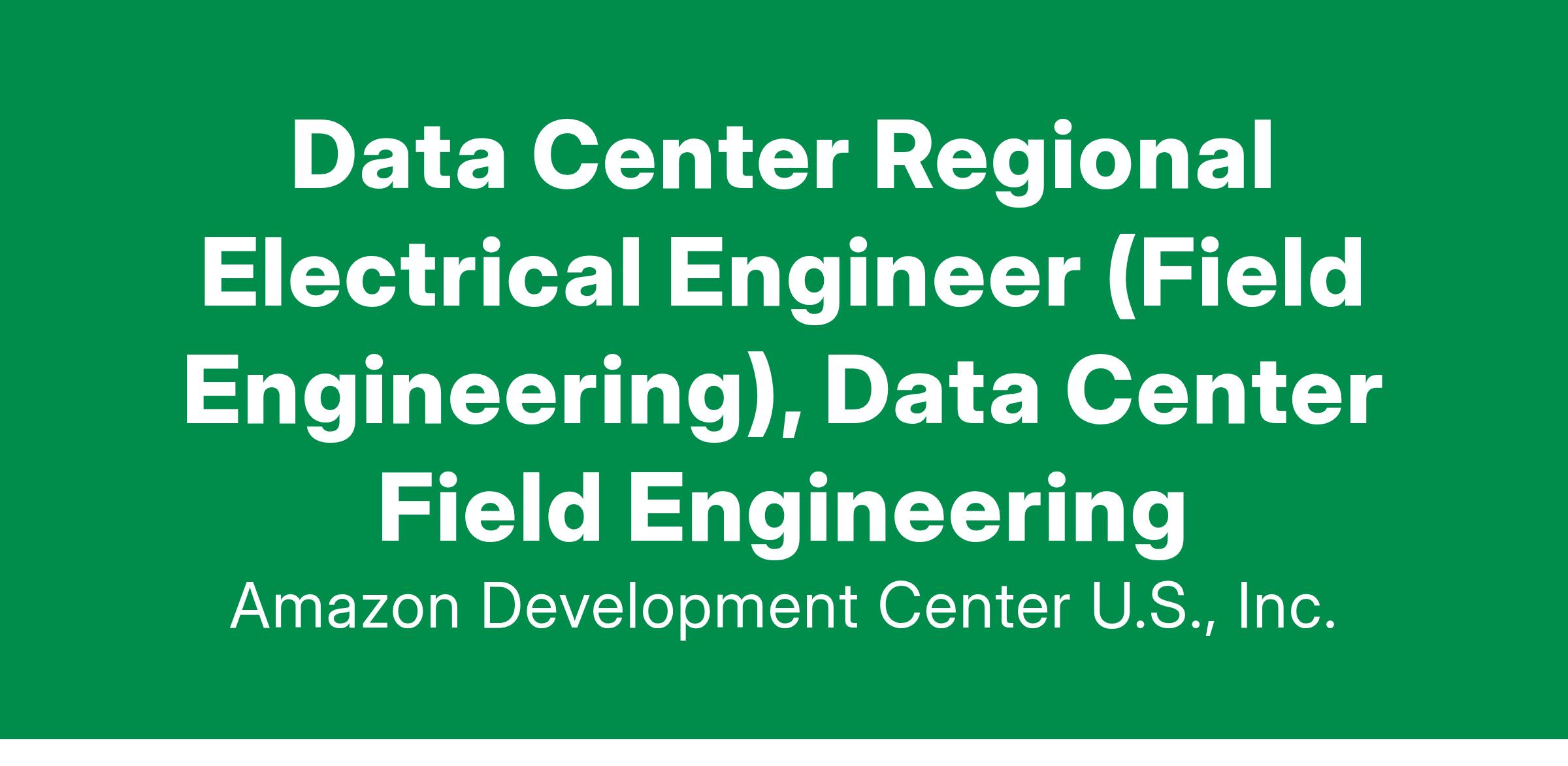 Each day you will interact with different teams responsible for all aspects of the data centers. You will prioritize your activities to support data center capacity availability and safety focusing on the actions that are most impactful. You will have the opportunity to work on projects locally and globally. We have an immediate opening for a Field Engineer in, America. If you meet these qualifications, exude passion, and enjoy the challenge of innovative projects at hyper-scale, this job is for you!