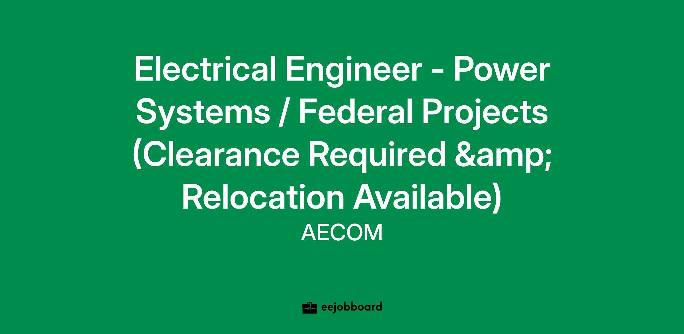 AECOM is seeking a creative and highly talented Electrical Power Systems Engineer - Federal for immediate employment in the Roanoke, VA office.