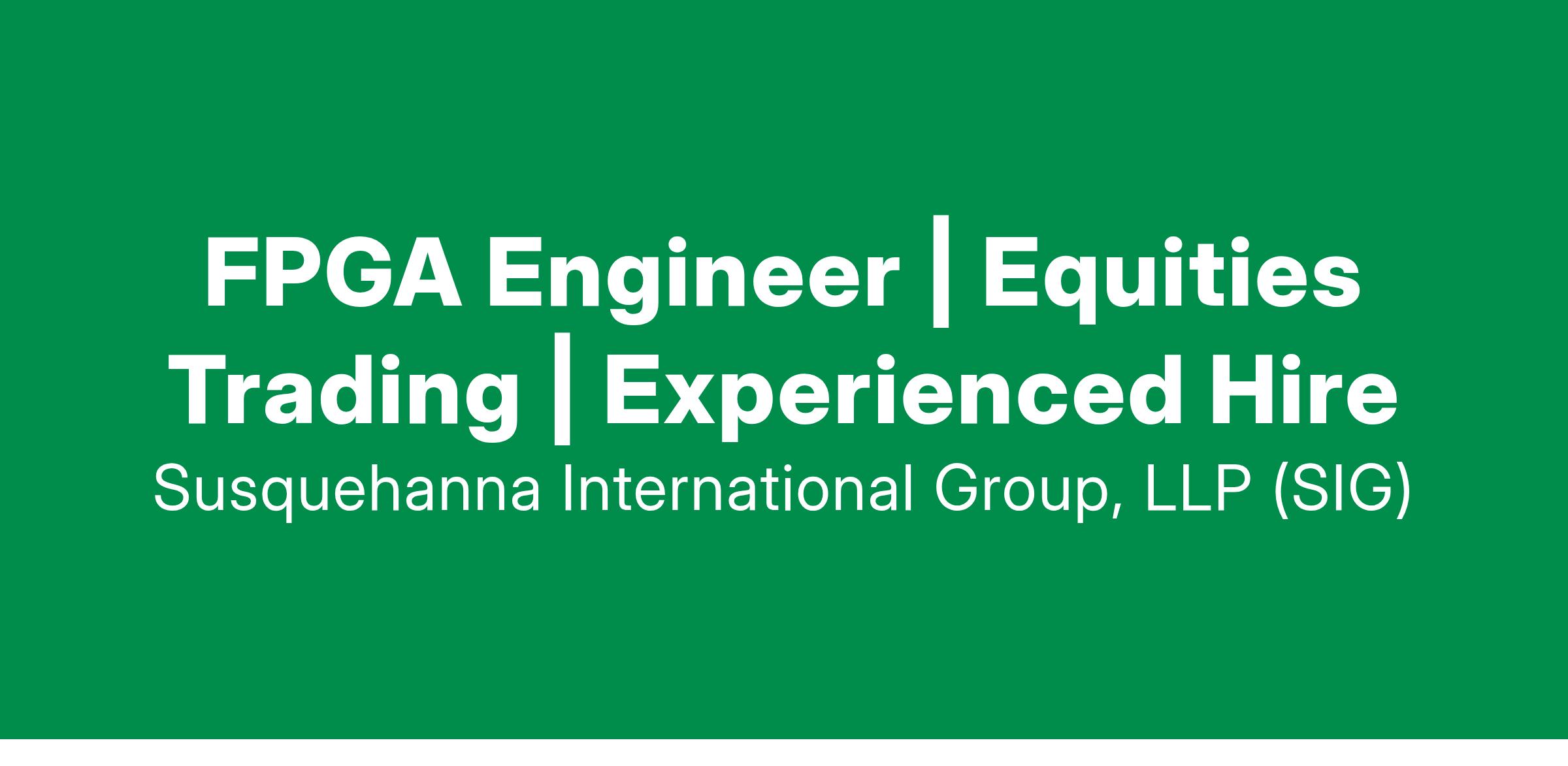 SIG is looking to add an FPGA Engineer to our technology team. The candidate will be required to design and implement hardware-accelerated solutions for SIG. These require in-depth knowledge of FPGA design and architecture, and the ability to translate problems into hardware solutions. Additionally, you will participate from concept through to production including hardware selection, FPGA design, simulation and testing. Existing knowledge of ethernet and TCP/IP is strongly preferred. Experience with VHDL, Verilog, System Verilog or HLS is required. No prior experience in finance or trading is necessary. This is an excellent chance to put your stamp on an exciting and challenging use of technology.