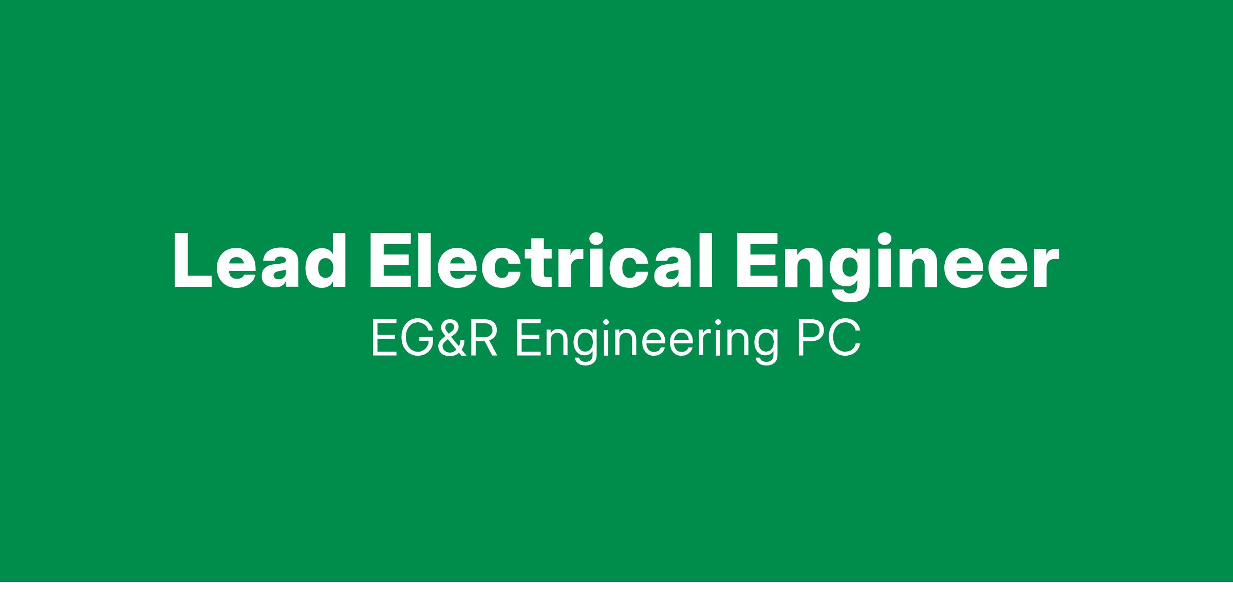 EG&R is seeking a Lead Electrical Engineer who is self-motivated and ready to contribute to the future success of EG&R Engineering PC. If you are interested in becoming an integral part of our team, please forward your resume to NamitaB@egrengineering.com.