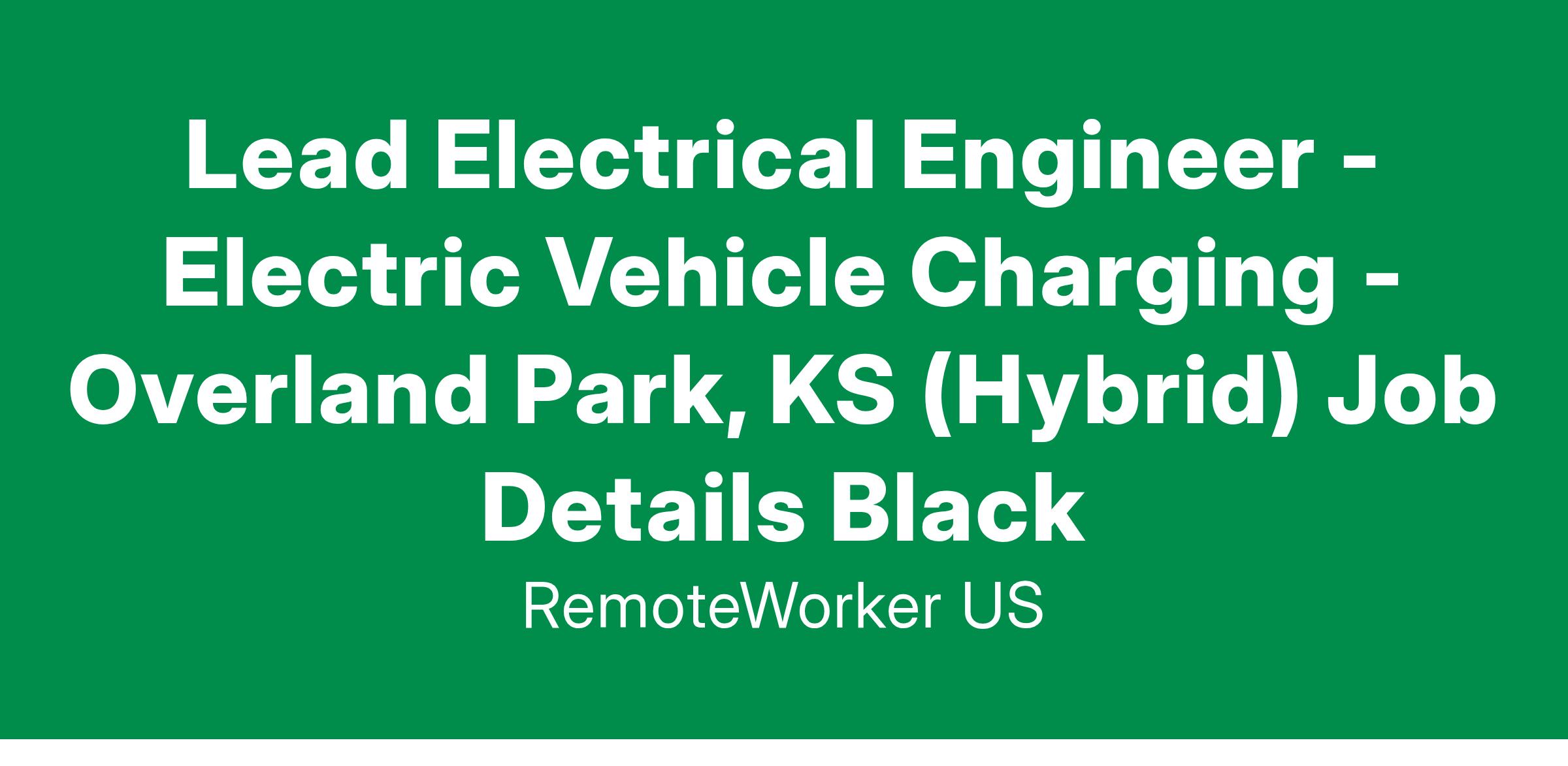 Lead Electrical Engineer - Electric Vehicle Charging - Overland Park, KS (Hybrid) Job Details Black