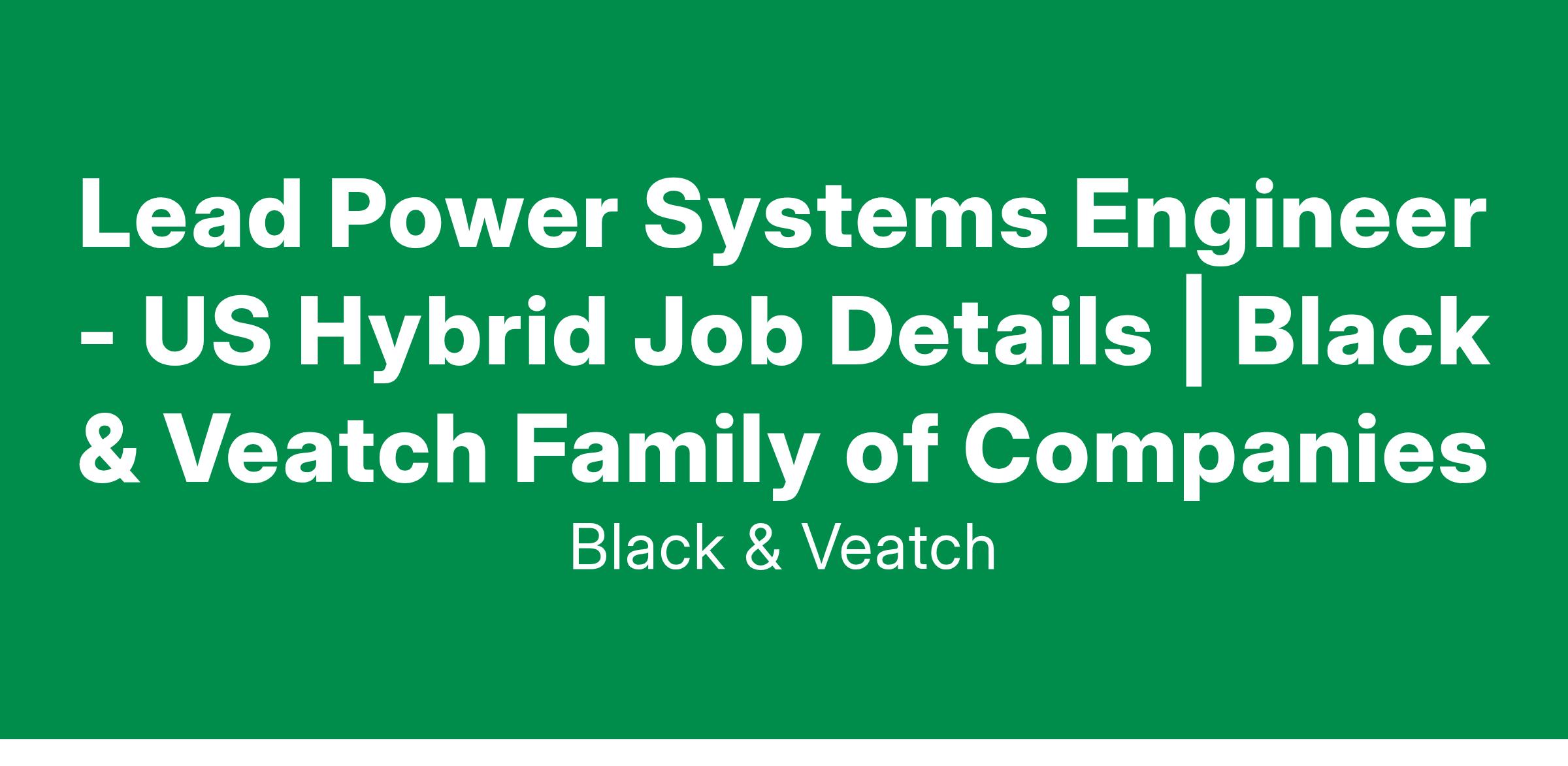 Lead Power Systems Engineer - US Hybrid Job Details | Black & Veatch Family of Companies
