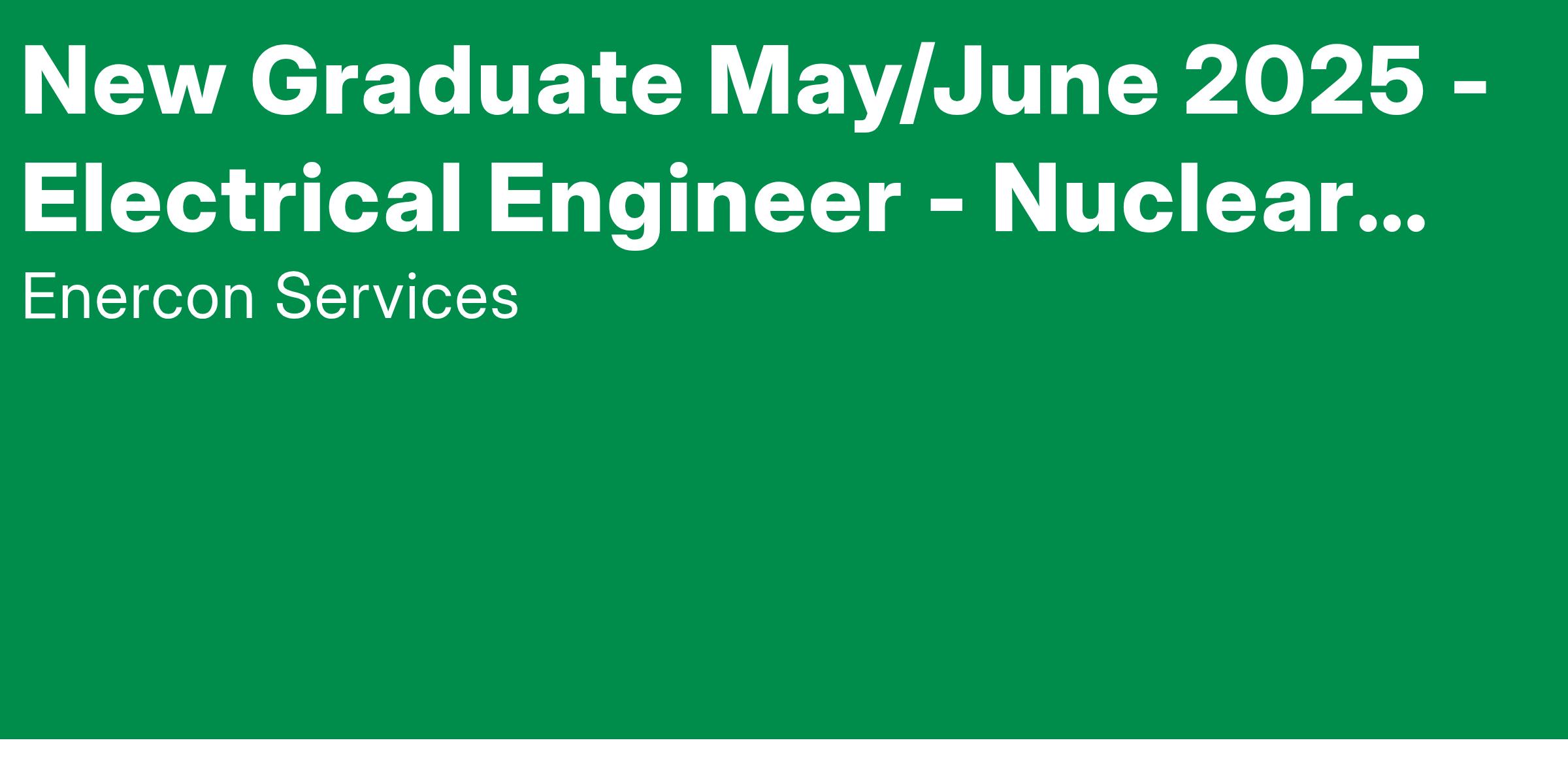 At Enercon Services, we excel in energy solutions and engineering. We're looking for enthusiastic individuals who love learning and solving challenges to join our dynamic and collaborative workplace. As a new graduate, you'll gain valuable industry experience, shape your career, and work on impactful energy projects. We offer a supportive environment for your growth and development. If you're eager to contribute and work on meaningful projects in a fast-paced setting, join us at ENERCON and be part of our innovative team! What are you waiting for? Join us at ENERCON!