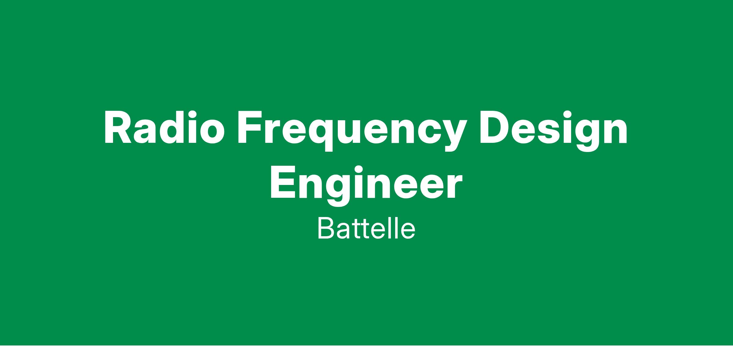 Battelle is seeking a Radio Frequency (RF) Engineer (level 4) to work in the Electronic Warfare group within the National Security Division. The position is located at Battelle Headquarters in Columbus, OH.