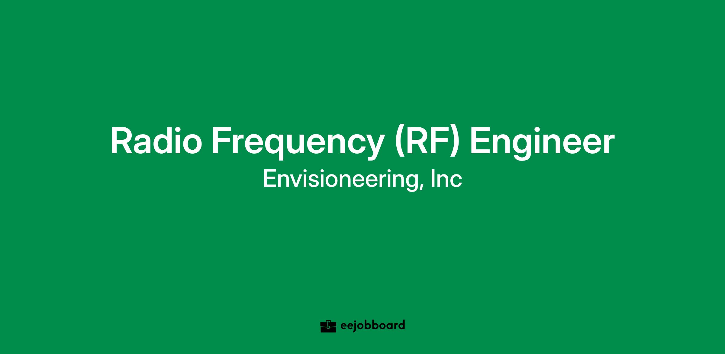 Envisioneering, Inc. is seeking a qualified experienced Radio Frequency (RF) Systems Engineer candidate. This position will support our work at the Naval Research Laboratory (NRL) Tactical Electronic Warfare Division (TEWD) to advance existing R&D projects and investigate and propose novel solutions related to the application of RF energy to electronic warfare, countermeasures and directed energy for the U.S. Navy.