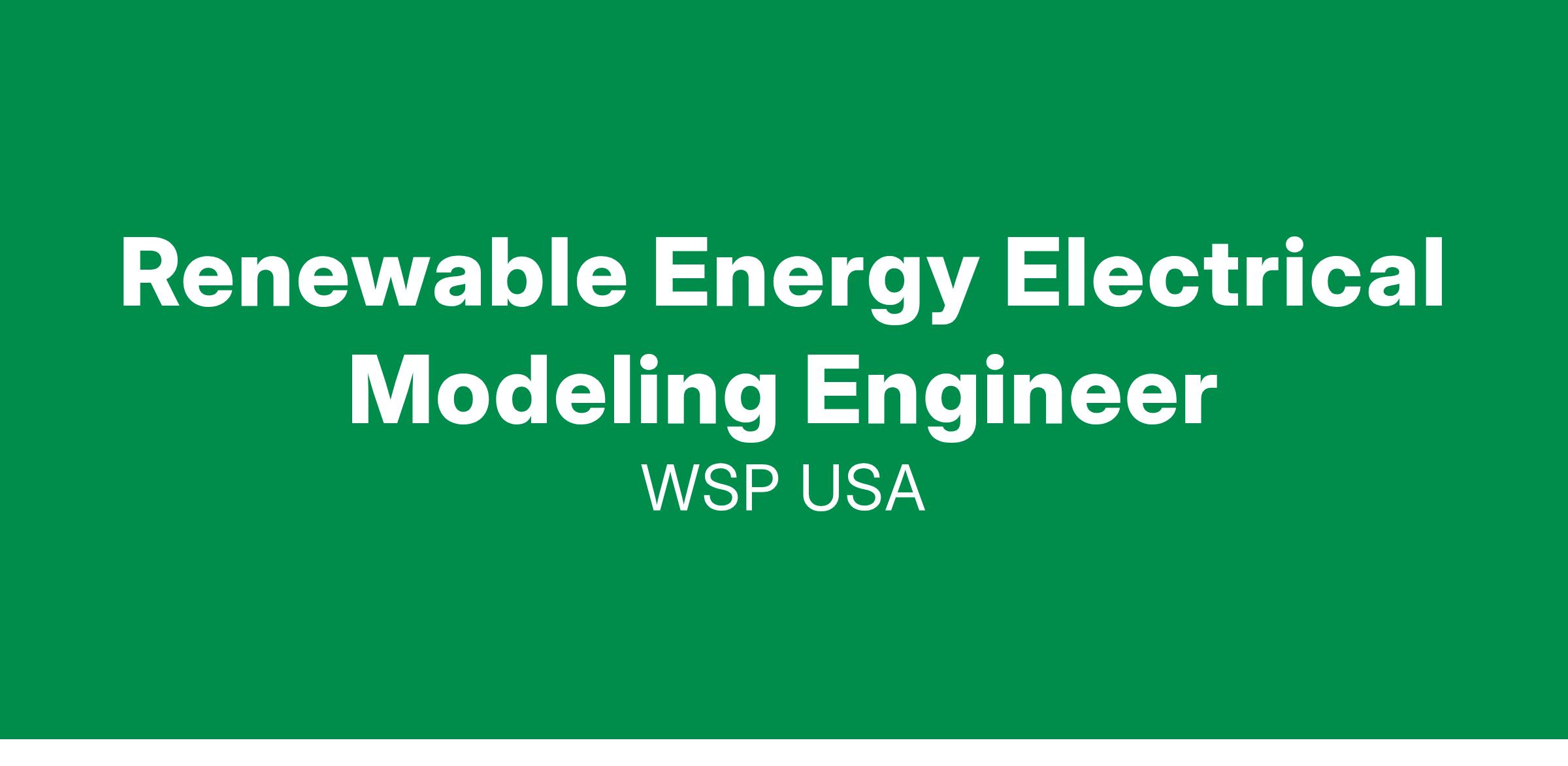 WSP is seeking a full-time Renewable Energy Electrical Modeling Engineer for our Boulder, CO office.