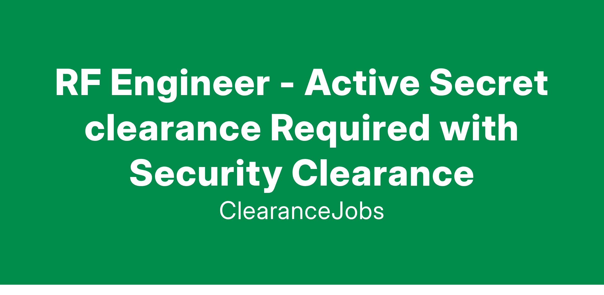 RF Engineer - Active Secret clearance Required with Security Clearance