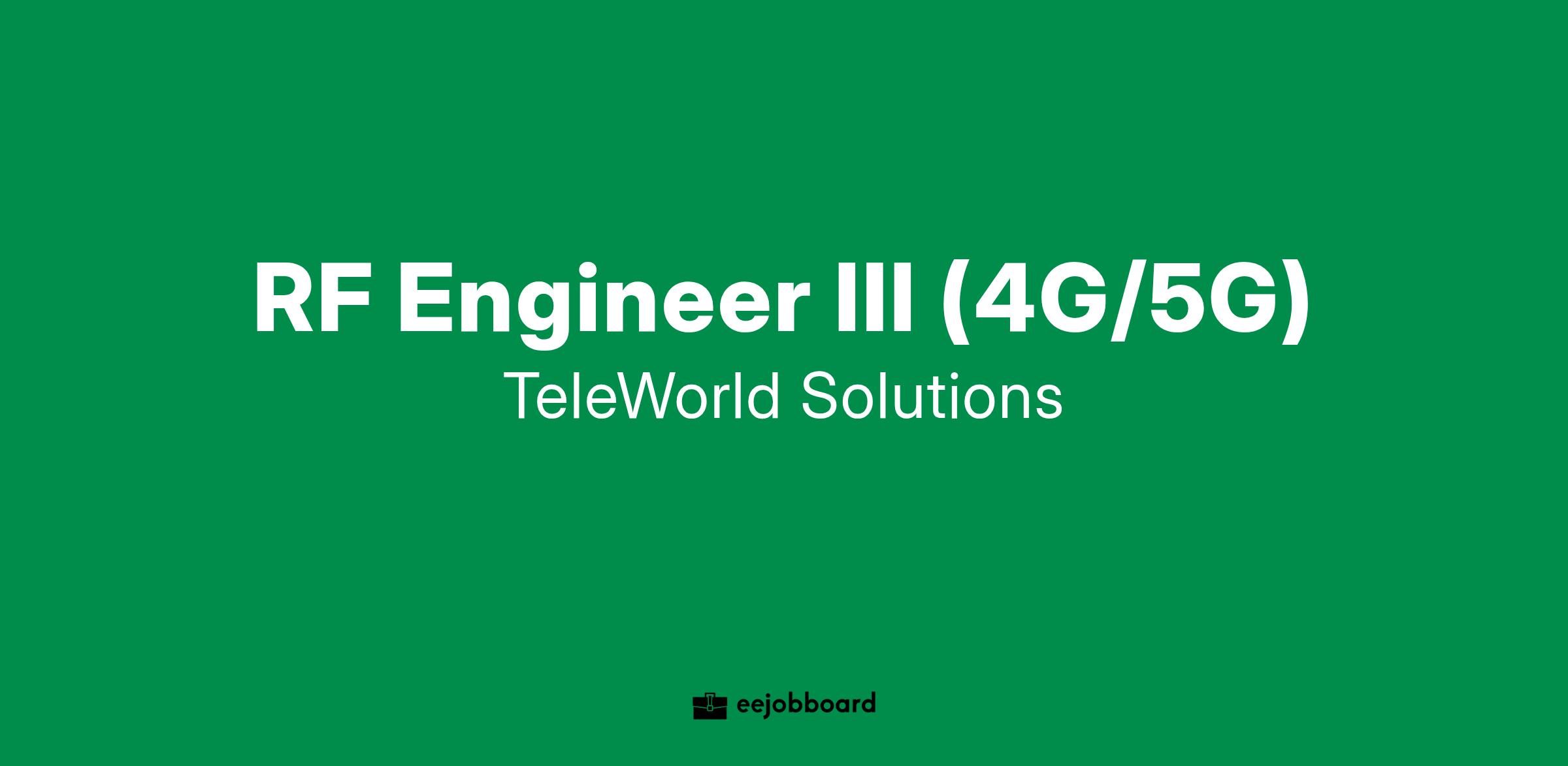 TeleWorld Solutions is seeking an RF Engineer III for our team! TeleWorld Solutions is a strategic wireless engineering and consulting firm offering network operators, OEMs and tower companies turnkey design, optimization, network dimensioning and deployment services.
