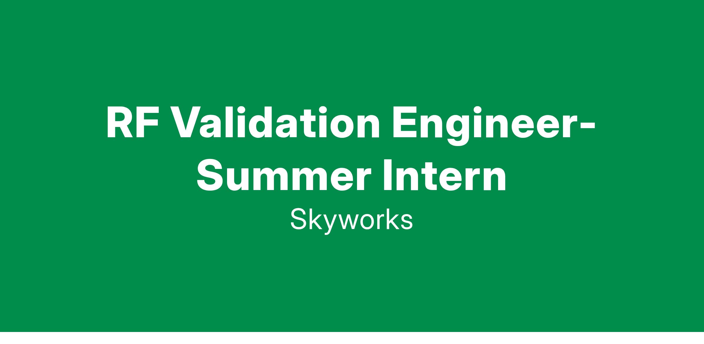 In this Summer Internship opportunity at Skyworks, you will learn and participate in developing advanced, state-of-the-art RF front-end module, working with seasoned engineering professionals and collaborating with subject matter experts within Skyworks. Not only will you get to know how things work in industry, but you will also accumulate advanced technical knowledge and skills, valuable experience as well as exploring full-time job opportunities at Skyworks. We are excited to have you as part of our team to help you start your professional growth and contribute to our success at Skyworks!
