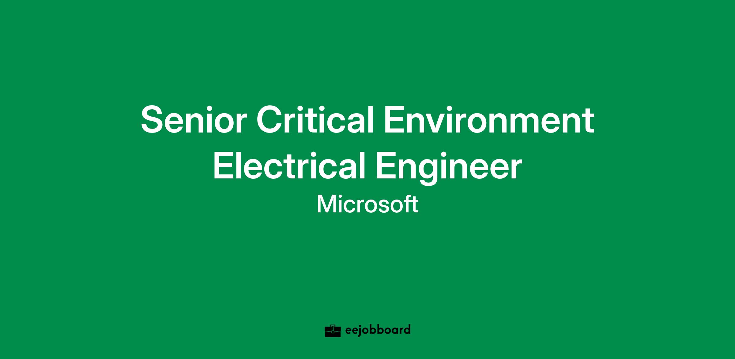 In alignment with our Microsoft values, we are committed to cultivating an inclusive work environment for all employees to positively impact our culture every day and we need you as a Senior Critical Environment Electrical Engineer.