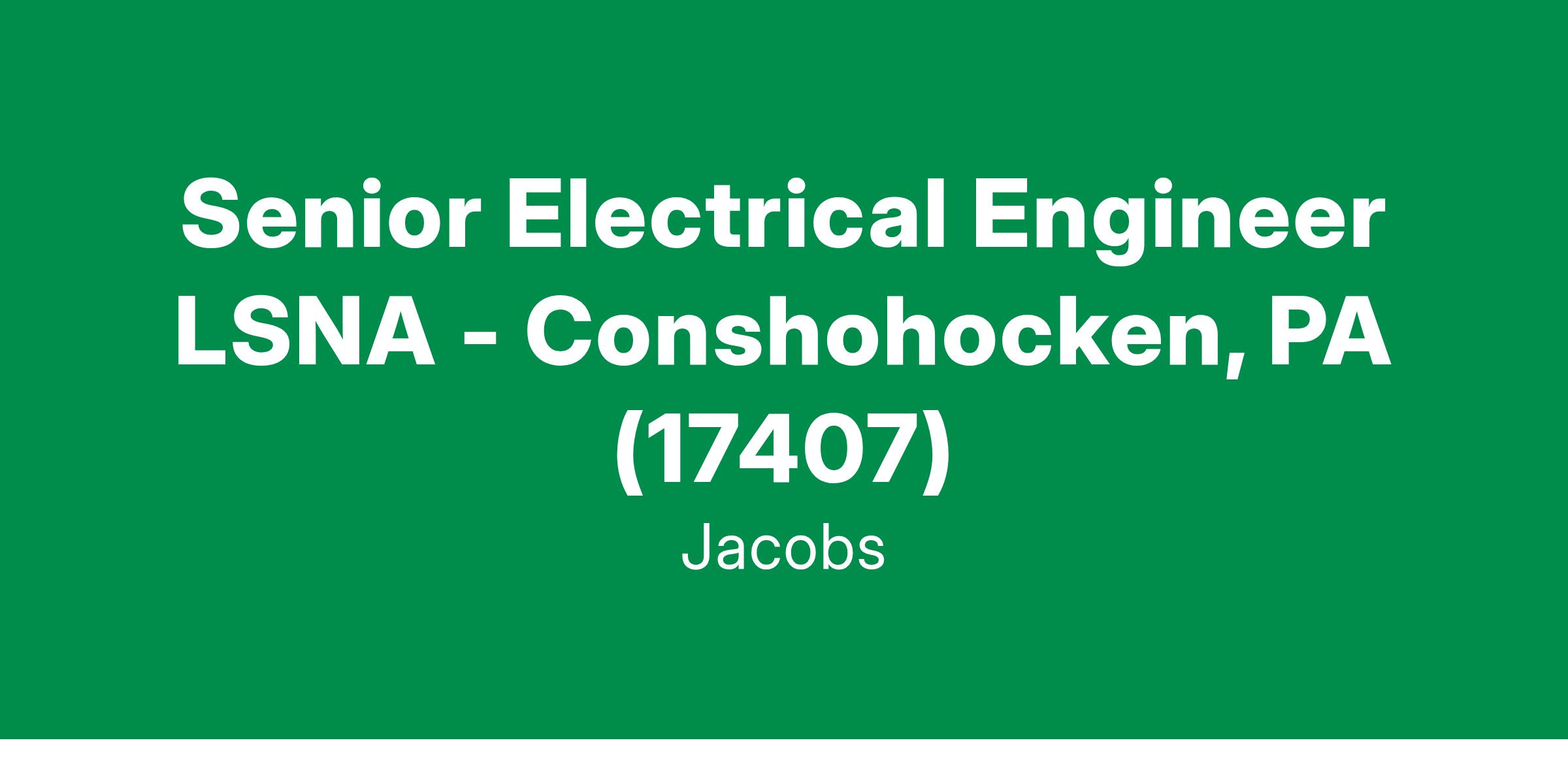 Senior Electrical Engineer LSNA - Conshohocken, PA (17407)