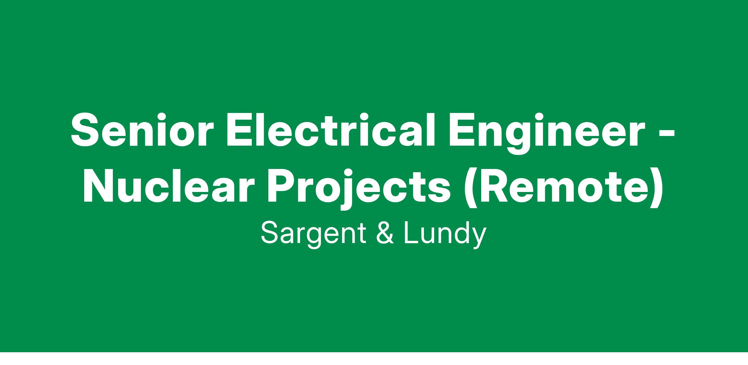 Sargent & Lundy is an Equal Opportunity/Affirmative Action employer. All qualified applicants will receive consideration for employment without regard to race, color, religion, sex, sexual orientation, gender identity, national origin, disability status, protected veteran status, or any protected status as defined by law.