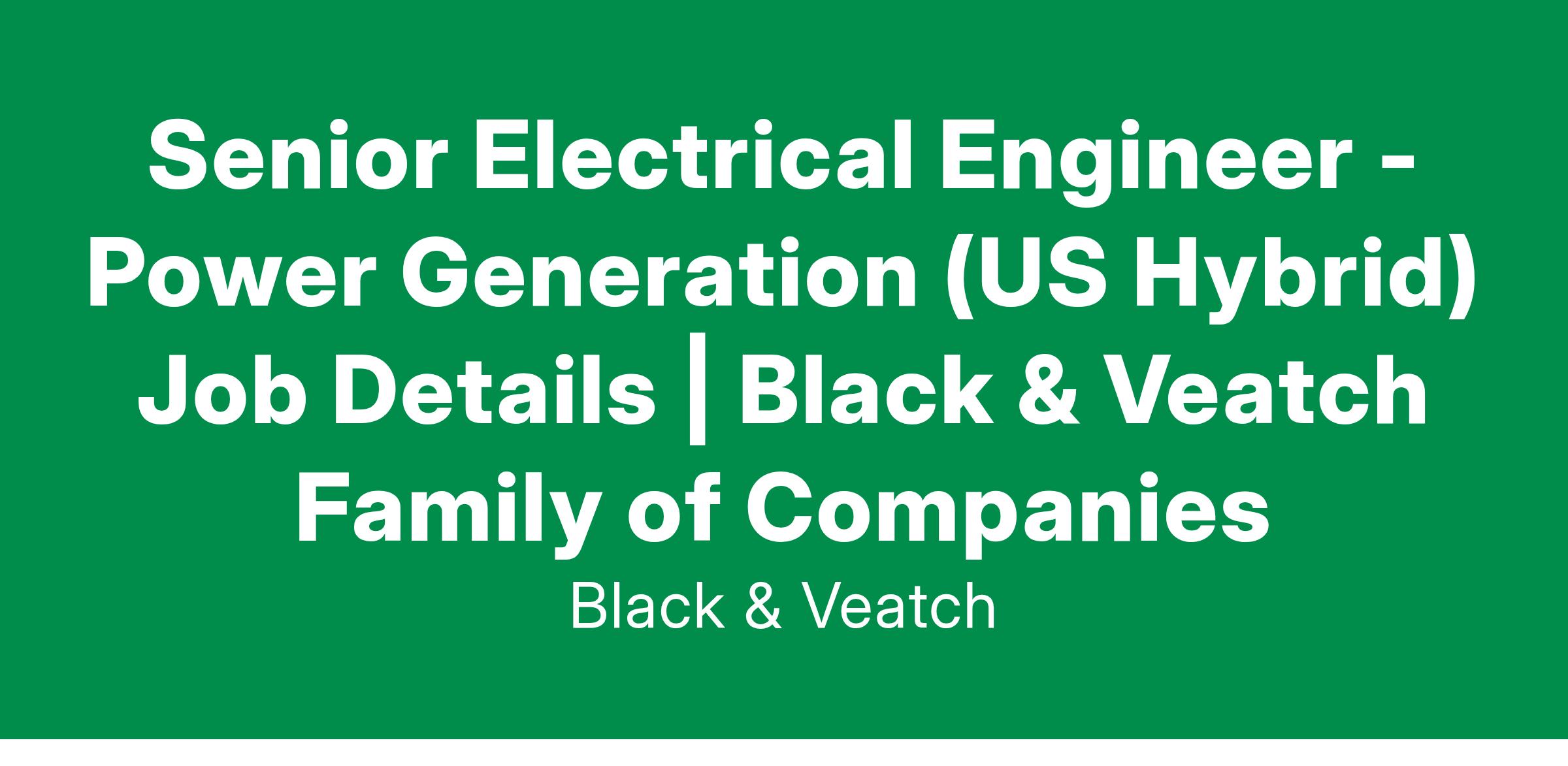 Senior Electrical Engineer - Power Generation (US Hybrid) Job Details | Black & Veatch Family of Companies
