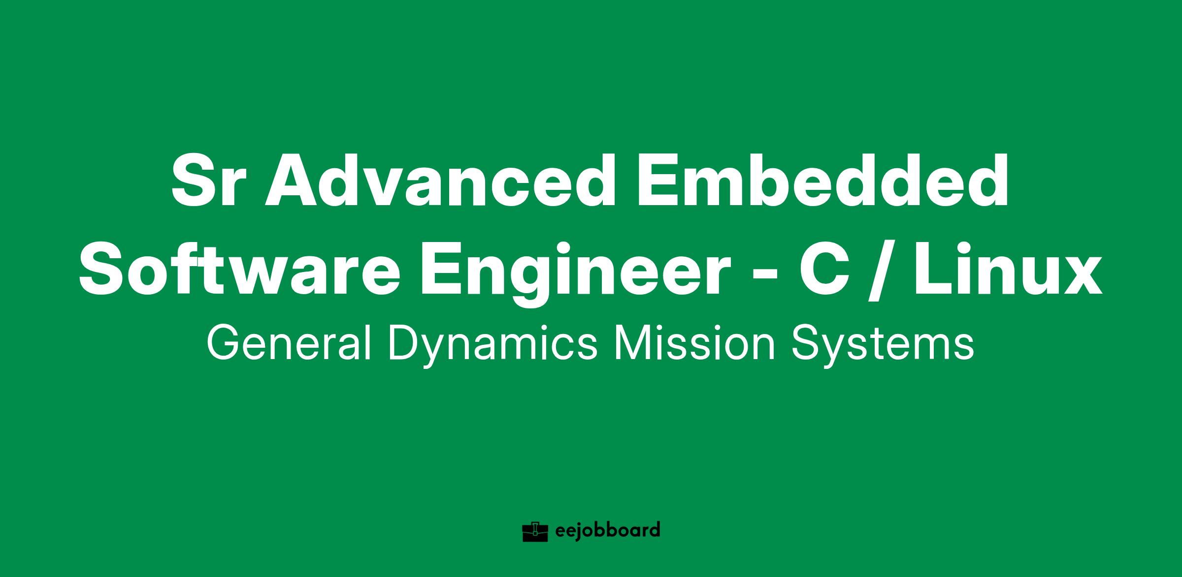 General Dynamics Mission Systems is currently seeking a Sr Advanced Embedded Software Engineer - C/Linux on-site in our Canonsburg, PA facility.