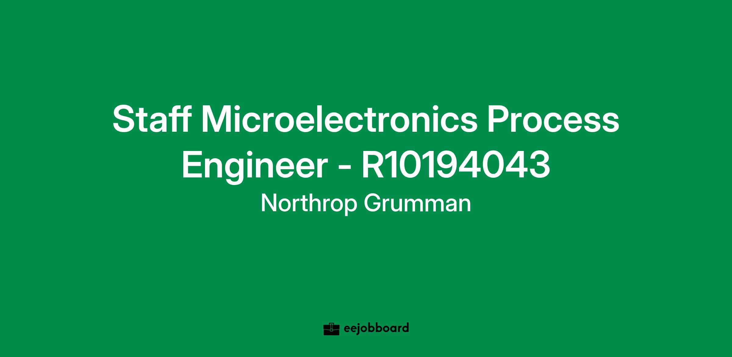 The Northrop Grumman Microelectronics Center (NGMC) of Northrop Grumman Mission Systems is seeking an exceptionally talented and motivated Staff Microelectronics Process Engineer to join our Workforce Development Team.