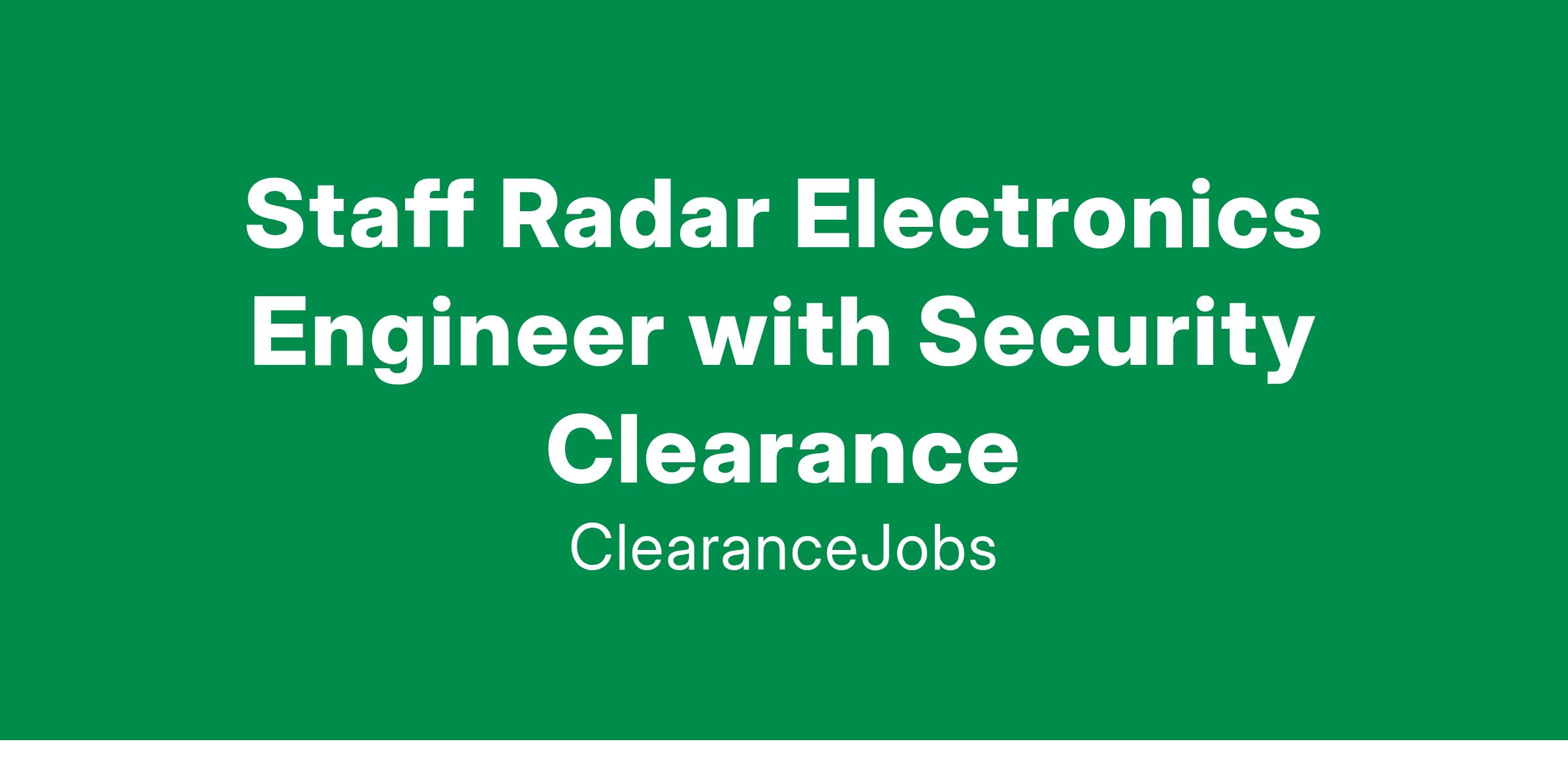 Basic Qualifications: * Must have a Bachelor's degree in a Science, Technology, Engineering or Mathematics (STEM) discipline from an accredited university AND 14 years of related professional/military experience in Engineering; OR a Master's degree in a STEM discipline from an accredited university AND 12 years of related professional/military experience in Engineering; or a Ph.D. in STEM discipline AND 9 years of related professional/military experience in Engineering. * An active in-scope U.S. Government DoD Secret security clearance (required to start) * Ability to obtain and maintain a Special Program Access (PAR/SAP) within a reasonable amount of time, prior to start. * Experience with Signals processing and Radar systems * Experience with electronics systems performance analysis, test or integration * Experience with MATLAB, C/C++, Python, or related languages