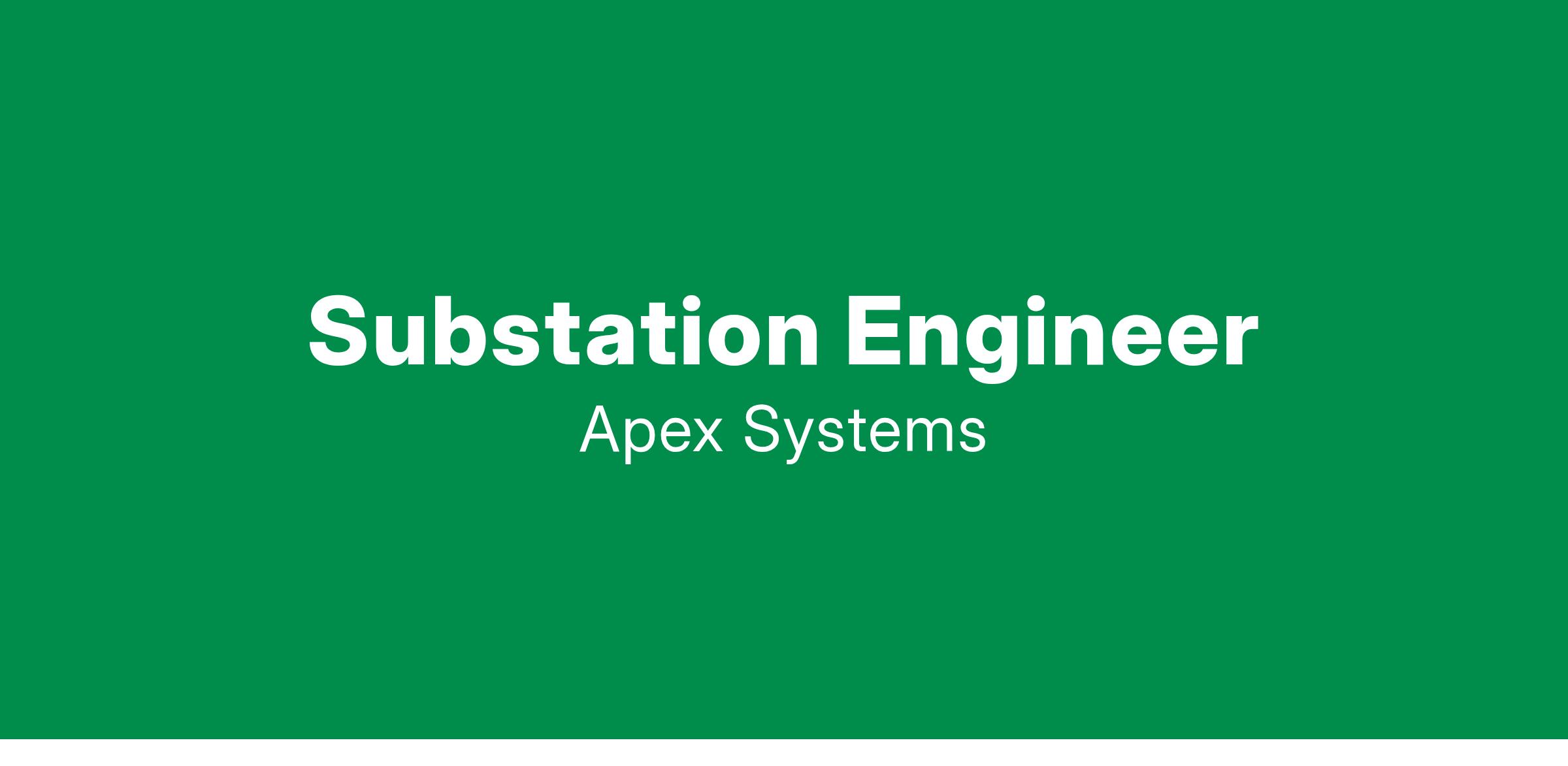 Apex Systems is actively hiring for a Sr. Substation Engineer role with a Fortune 200 Renewable Energy Client!